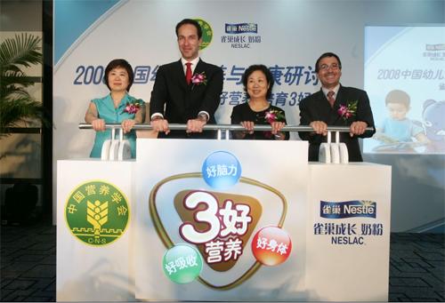 Beijing, May 26, 2008 in \"Liuyi\" children\'s day dawn, Nestle (China) Ltd was held in Beijing and the Chinese nutrition society today \"2008 China seminar on children\'s nutrition and health\". China Institute of nutrition and Nestlé infant nutrition experts together with the major media reporters from Beijing China children\'s nutritional status, the importance of balanced diet on children\'s issues in depth. The seminar, Nestle launched for Chinese children\'s mothers are tailored \"sanhao nutrition\" full solution; also announced that for the first time children in the earthquake sent Nestle growth of high quality milk powder.